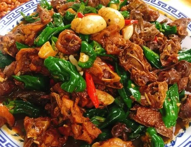 Spicy chicken is a local delicacy originating from the folk, which emerged in the late Ming and early Qing dynasties. Chickens must be grass-fed chickens raised by farmers, that is, the kind that eat bugs, grass, grain, and can fly up trees when frightened. It is best to use chicks from that year, hatched in the summer, and usually ready to be eaten around the Mid-Autumn Festival. This kind of chicken is delicious, tender and delicious. The pepper must be made from the unique local variety Wangtianhou. This kind of pepper is named because it grows toward the sky. It has a thin and crisp skin, full seeds, and is full of spiciness. When you wash the pepper, your hands will feel the pain of the spiciness. The chicken should be cut into medium-sized pieces. If they are too large, the flavor will be difficult to penetrate, and if they are small, there will be a lot of broken bones. Traditionally, spicy chicken is cooked in a folk pot, usually using chopped firewood as fuel. First put the chicken into a smoking pot of boiling oil, be sure to fry it until it turns slightly yellow, then add the chili pepper, then pour in rice vinegar, soy sauce and various seasonings. The best heat is when the pot squeaks when you pour it in. The tender chicken is stir-fried with a variety of condiments until the chicken is golden brown and crackles, and the aroma is instantly overflowing. The dishes that come out of the pot are delicious in color, flavor, spicy, mellow, and attractive. They are tender and juicy in one bite. The unique spicy aroma fills the lips and teeth, making people drool just thinking about it.