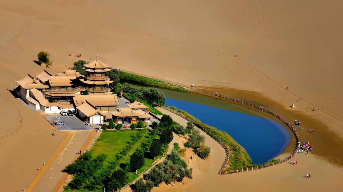 Crescent Lake is nestled at the foot of Mingsha Mountain, a pool of clear water, shaped like a crescent moon. Surrounded by sand mountains, it can never swallow it. The spring water is so clear that you can see the bottom, the water plants are swaying, and a few small fish are swimming around. How long has this spring existed? No one can tell. There is a local legend that this is a tear of the Bodhisattva, which fell into the desert and became a spring that never dries up. When the sun is high in the sky, there is still a little coolness by the spring. There are often old men sitting under the willow trees, half-closing their eyes, playing a desolate tune on the huqin in their hands, echoing with the sound of the wind.