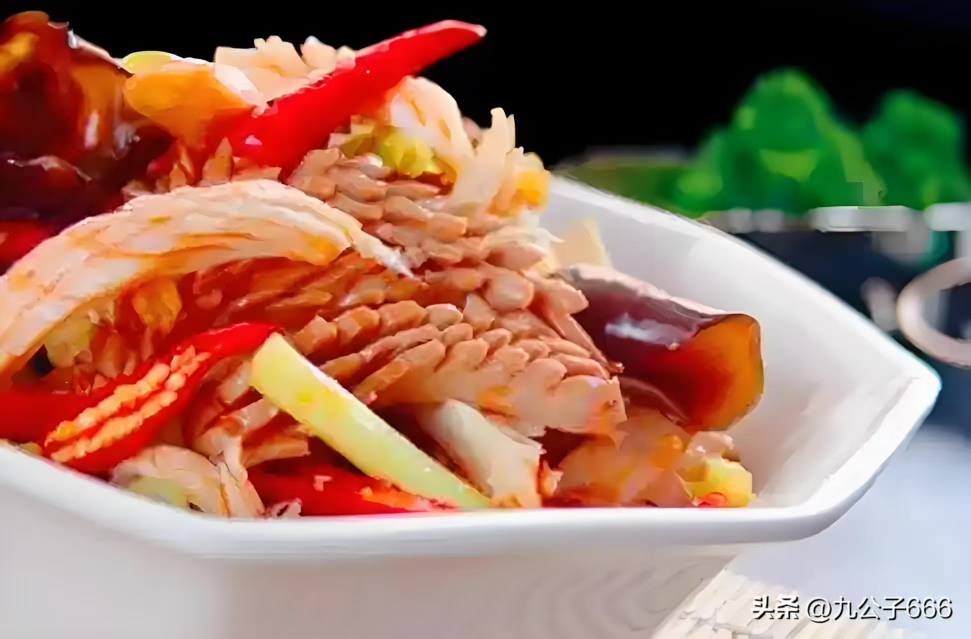 1. Sweet and Sour Carp: Using Yellow River carp as the main ingredient, it is fried until golden and then topped with sweet and sour sauce. It is crispy on the outside and tender on the inside. It is sour and sweet and delicious. It is shaped like a carp jumping over a dragon gate. It is the finale of the banquet.