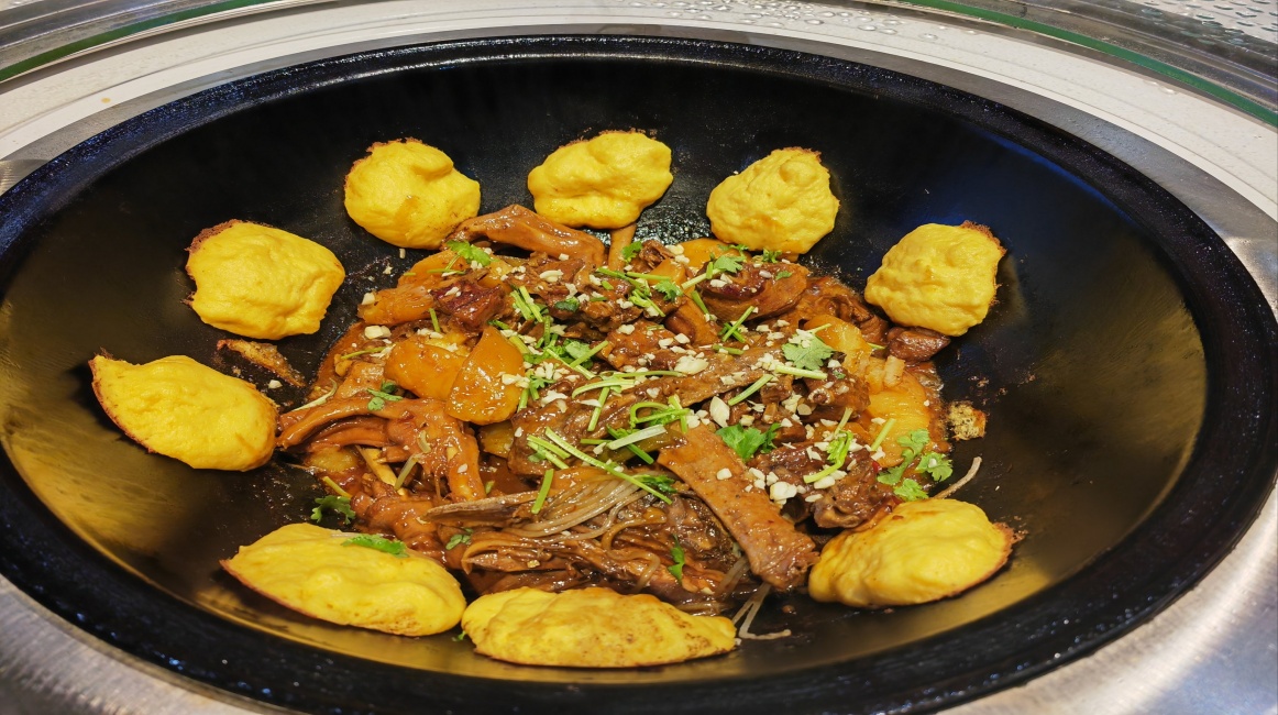 The soul of Northeastern cuisine lies not only in its flavors but also in its inclusiveness and lively atmosphere. Whether it's a small street stall's iron pot stew or a family gathering's mixed stew, the large iron pot bubbling and steaming, the ingredients swirling and blending in the broth, a balanced mix of meat and vegetables, symbolizing the inclusiveness and generosity of the Northeastern people. A Northeastern meal is invariably served in large platters and bowls, with a complete array of meat and vegetables. The tangy and refreshing sauerkraut and pork belly hot pot, the rich and savory braised pork ribs, and the sweet and chewy candied sweet potatoes, all served with a bowl of fragrant rice or cornbread, ensure everyone eats to their heart's content. This "unpretentious and practical" dining style is a true reflection of the Northeastern people's hospitality, making every diner feel the warmth of home.