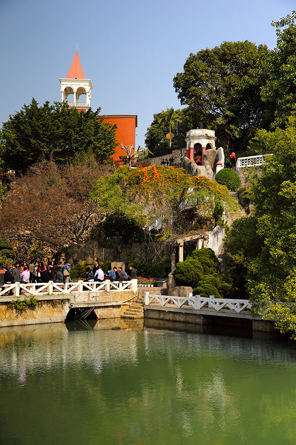 There are also Chinese-style courtyards with white walls, black tiles and overhanging eaves, full of simple and unsophisticated lingering charm. Shuzhuang Garden is an outstanding representative among them. Built by Lin Erjia, a wealthy Taiwanese merchant, to cherish the memory of his former residence in Banqiao of Taipei, the garden is built along the sea and divided into two parts: the Canghai Garden and the Bushan Garden. With pavilions, terraces, towers, winding paths leading to sequestered quiet places inside, the garden not only has the exquisiteness and elegance of Jiangnan gardens, but also embraces the vastness of the sea.
