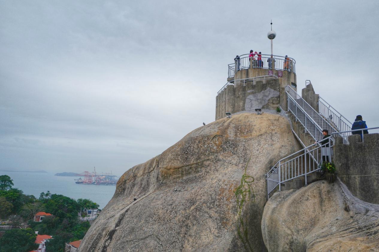 Gulangyu Island is covered with green rolling hills and undulating rocks. The highest point of the whole island is Riguang Rock, with an altitude of 92.6 meters. Climbing to the top of Riguang Rock, you can feel the sea breeze brushing your face and enjoy an extremely broad view, taking in all the beautiful scenery of Gulangyu Island at a glance. You can see the island surrounded by blue sea and sky, dotted with red tiles and green trees, and the high-rise buildings in downtown Xiamen looming in the distance, forming a beautiful landscape painting of a mountain and sea city.